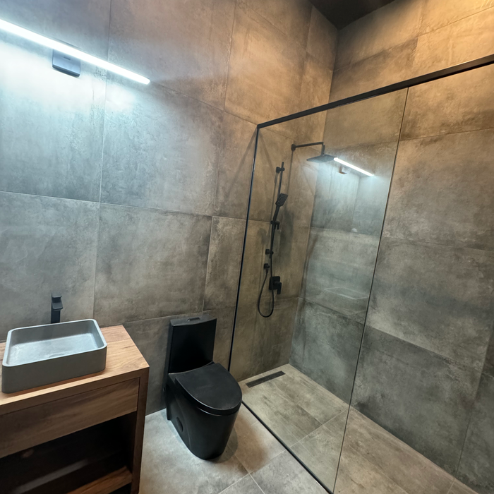 In-floor heating, spray foam insulation, and a separate furnace for the second floor ensure optimal climate control throughout the year. Exterior finishes include a mechanically locked metal roof, metal siding, glass garage doors, and a stamped concrete walkway. A deck lounge area with clear glass railings extends the entertaining space outdoors, while integrated Sonos surround sound ties everything together. This project exemplifies custom garage construction taken to the highest level.